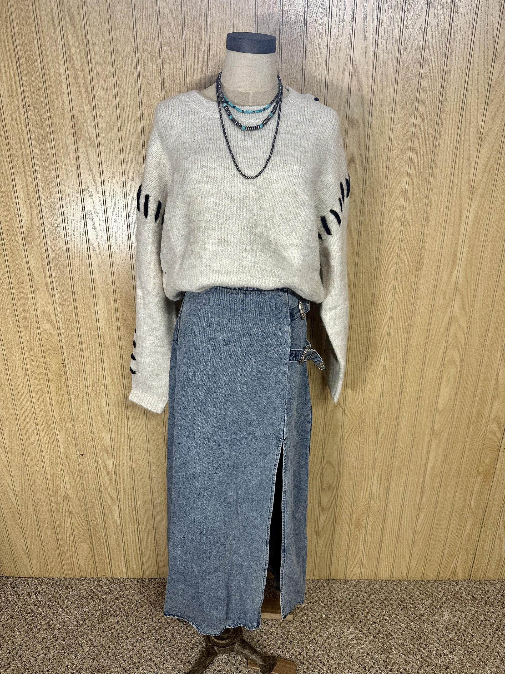 DOUBLE SILVER BUCKLE DETAIL DENIM MIDI SKIRT