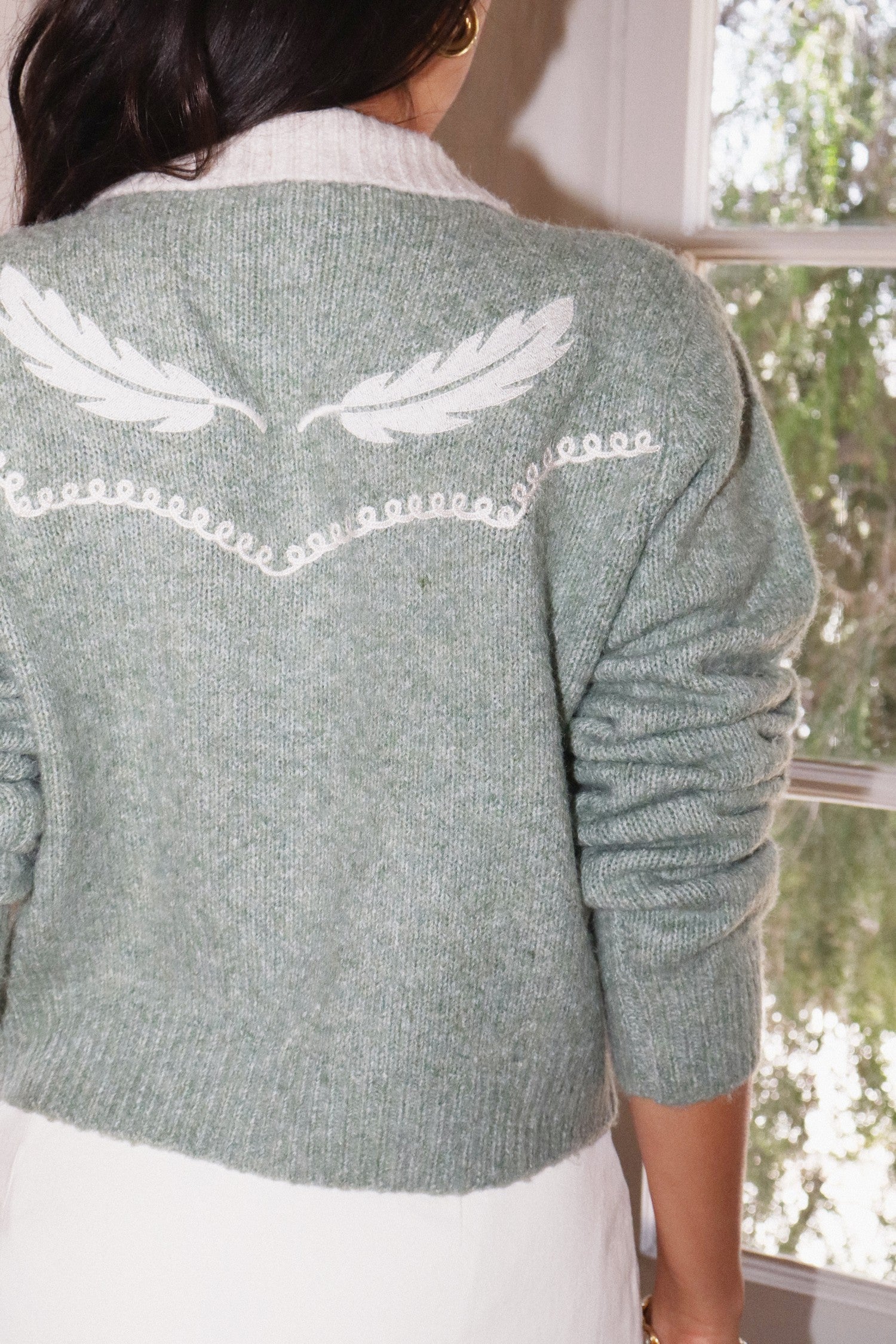 Soft, sweet, and effortlessly chic — The Sage Feather Cardigan is your go-to cozy layer for any season. Featuring delicate feather embroidery, contrast trim, and front pockets, it adds a touch of vintage charm to your everyday look. Pair it with denim or a midi skirt for a perfectly polished yet relaxed vibe. 🤍