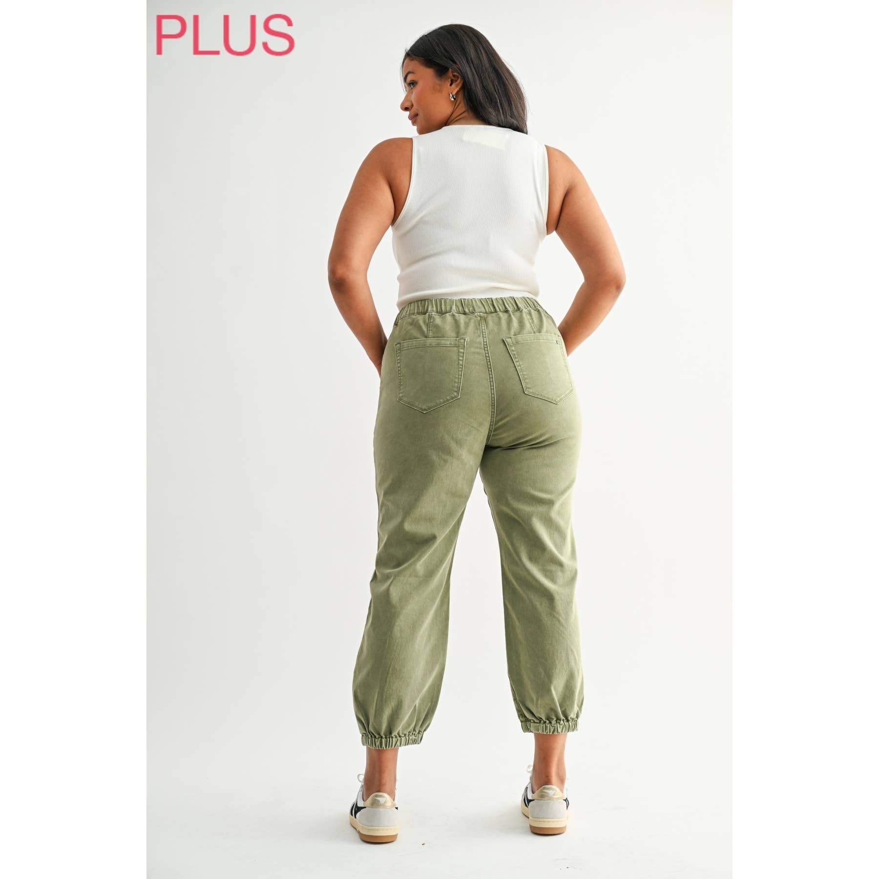 Meet your new favorite wardrobe chameleon: the Plus High Rise Jogger in Olive. Dress it up with heels and a sleek top for a night out, or keep it casual with sneakers and a tee for laid-back days. With its flattering high-rise fit and versatile olive shade, this jogger effortlessly takes you from relaxed vibes to stylish moments with a playful spin.