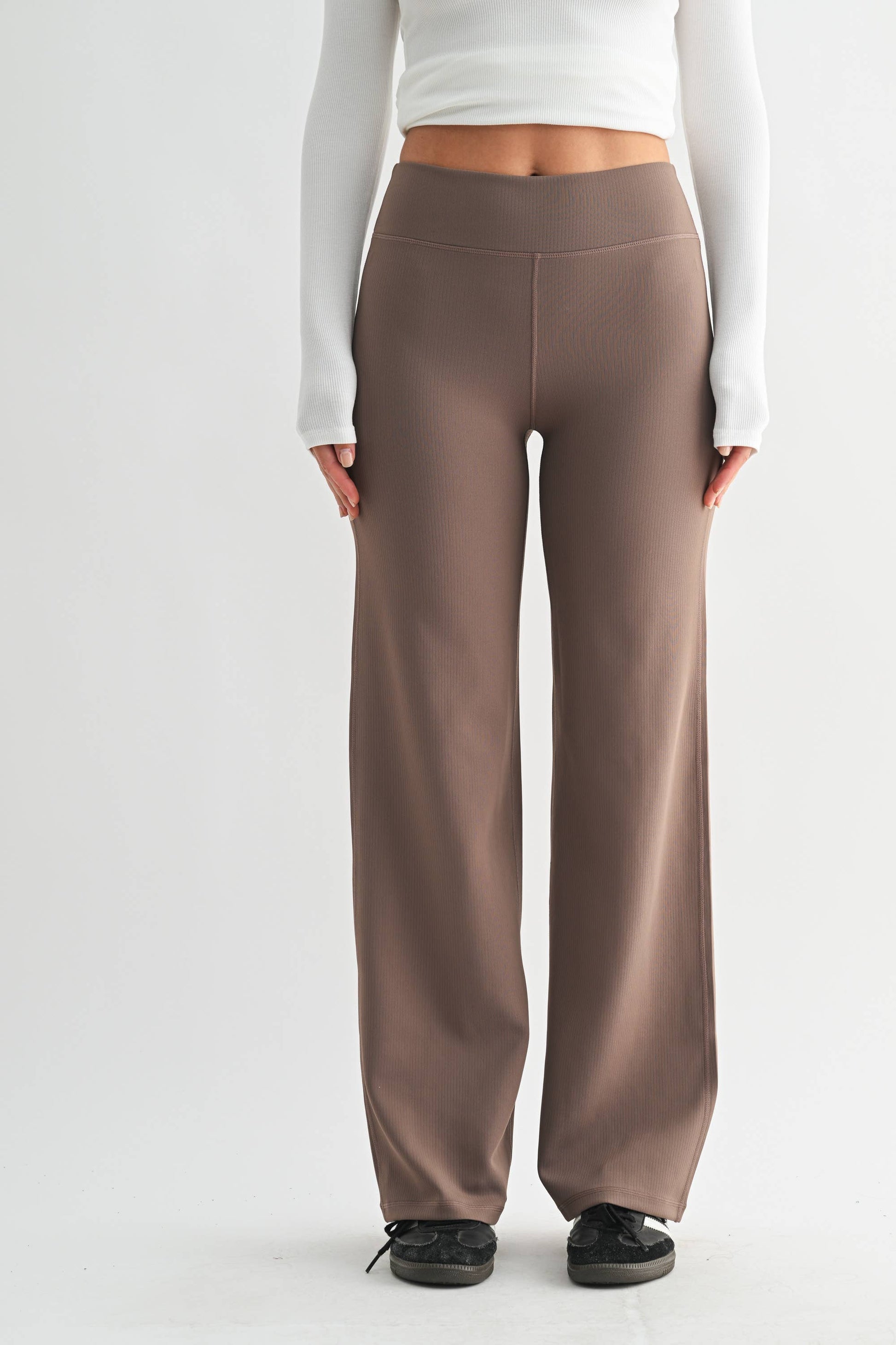 The Jacquard Stripe Wide Leg Pant features a fitted waist and hip for comfortable wear. Crafted from mid-weight scuba fabric with extra stretch, these pants provide a secure fit with a card pocket in the waistband for convenience. Enjoy the form and function of these stylish pants. Model is 5'9", a size 2, and is wearing an S 80% polyester 20% spandex 32" inseam Four-way stretch