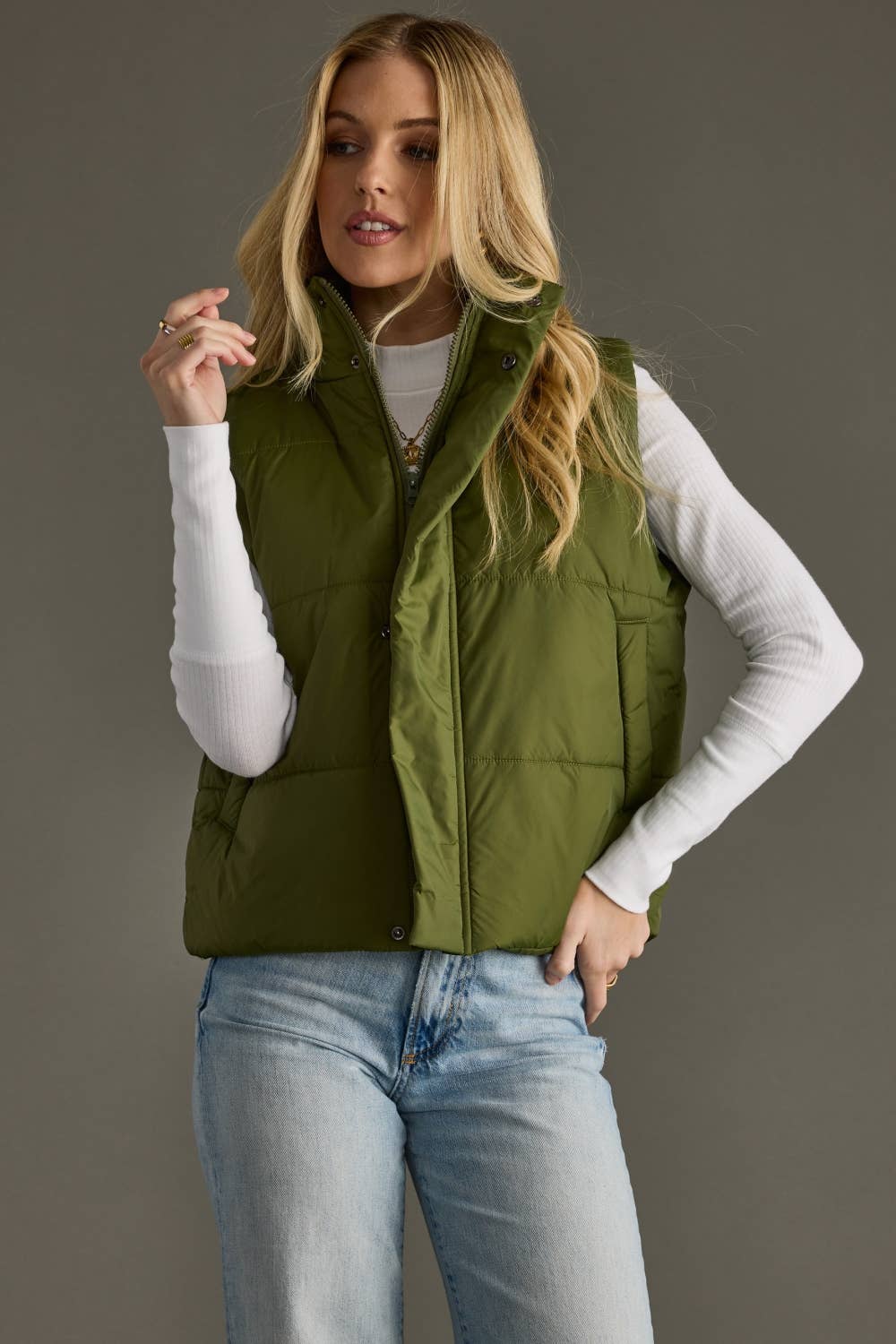 Add a splash of adventure to your wardrobe with this Olive Vest! Its versatile olive shade pairs perfectly with everything, while the comfy fit keeps you ready for whatever the day throws your way. Whether you're layering up for a hike or jazzing up your weekend look, this vest brings easy style and effortless charm.