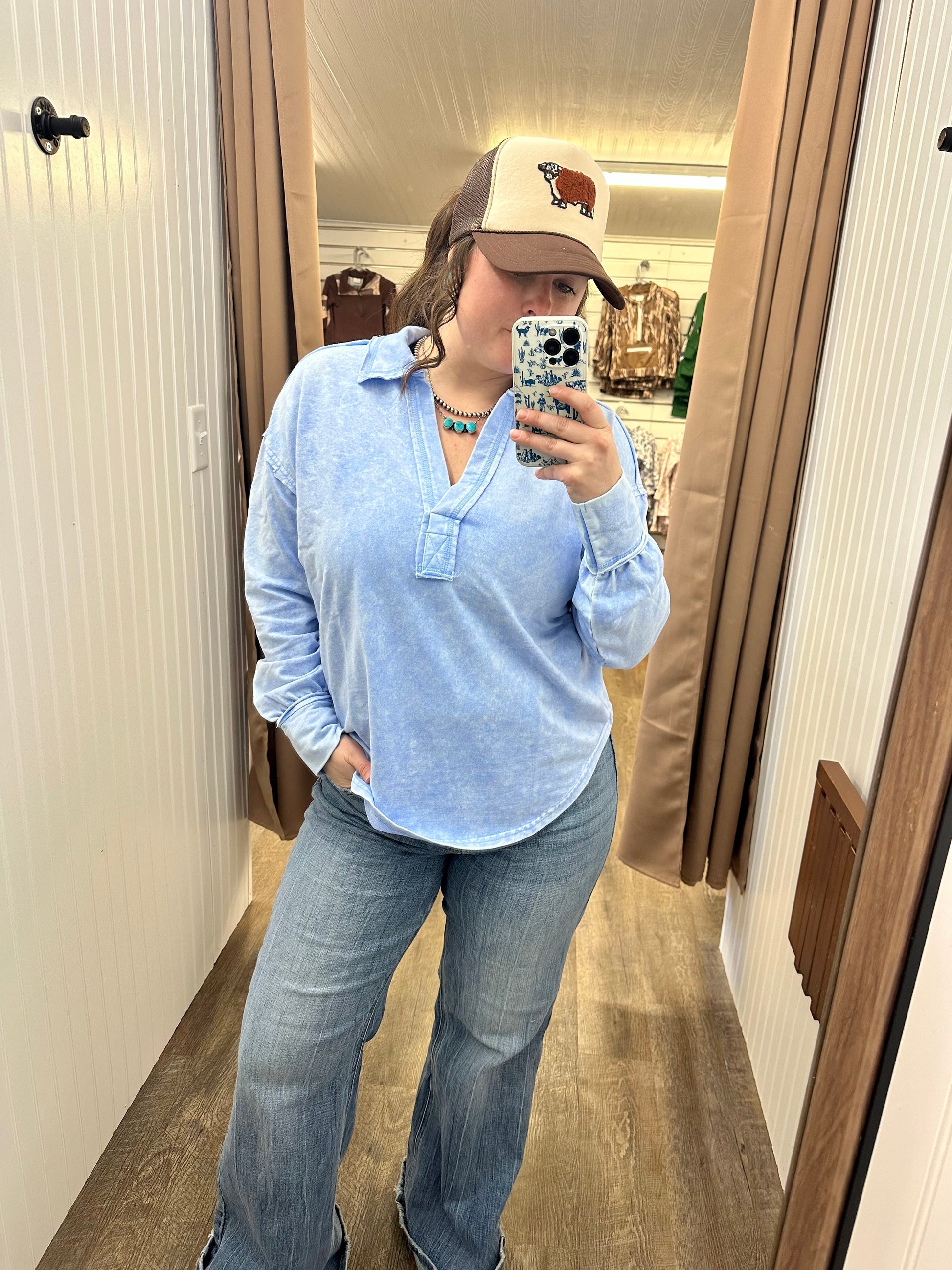 WASHED COLLARED LONG SLEEVE KNIT TOP (2 Colors)
